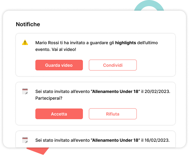 Ricevi ed invii messaggi alla tua società sportiva e ai tuoi compagni.